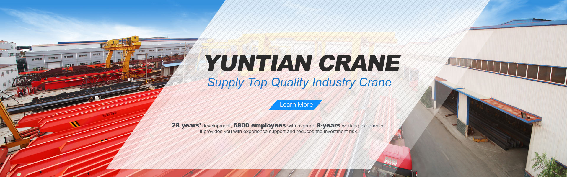 เหอหนาน Yuntian เครน จำกัด ตั้งอยู่ในบ้านเกิดปั้นจั่นของจีนประกอบกับยอด crane มีประสบการณ์รวมวิศวกรและเรารู้วิธีการควบคุมคุณภาพของ crane อย่างเคร่งครัดสำหรับคุณประหยัดค่าใช้จ่ายในการส่งออกพิเศษสำหรับคุณดังนั้นเราสามารถจัดหาให้คุณมีคุณภาพสูงสุดเครนอุตสาหกรรมด้วยดีที่สุด ราคา.