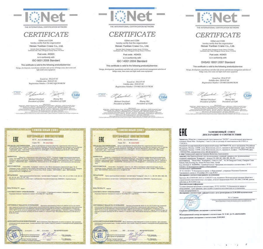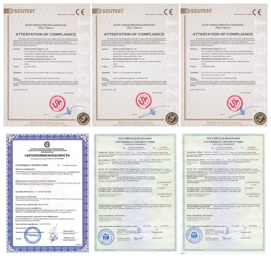 เครนของเราได้ผ่าน CE, ISO, GOST, SGS, TUV, BV และอื่น ๆ