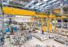 เครนติดตั้งโครงเหล็กกึ่งยุโรปขึ้นอยู่กับเครนยกของ ซึ่งประกอบไปด้วยโครงสร้างช่วงลำต้นยกและกลไกการเดินทางข้ามกลไกการเดินทางที่ยาวนานและระบบควบคุมไฟฟ้า มีเพียงด้านข้างหนึ่งของปั้นจั่นเท่านั้นที่มีขาเชื่อมโยงอยู่บนรางบนพื้นดิน ด้านอื่น ๆ ที่มีท้ายรถวิ่งอยู่บนผนังของการประชุมเชิงปฏิบัติการ เมื่อเทียบกับเครนเครนแบบธรรมดา มันเป็นสิ่งที่ดีเลือกที่จะประหยัดการลงทุนและพื้นที่
